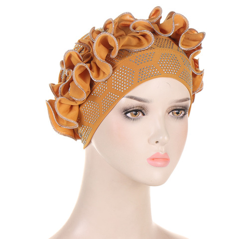 卸売レディースファッションシニーフルラインストーンクリスタルダイヤモンドPieuvreターバンキャップアフリカスカーフ