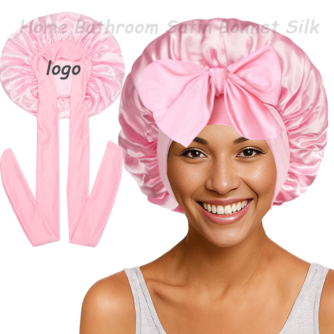 大きなシルクボンネットスリーピングサテンヘアボンネットホーム浴室サテンスリーピングウェア女性用天然ステインヘアボンネット
